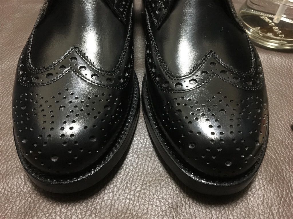 個人的にフルブローグの磨きが初めてだったのとボックスカーフ初体験だったので、探り探りでしたが革本来の力のおかげかいい感じに仕上がってよかったです。