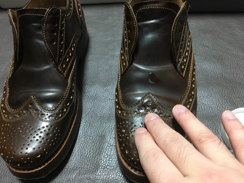 今回みたいな極端な例は中々ないと思いますけど、これからの季節特に乾燥するので、水分補給による潤いというのは、何となく大事なんじゃないでしょうかね。普通のカーフだとクラックとか怖いですし。コードバンは裂けるのが怖い。出来ることはやっておきたいですやっぱり。