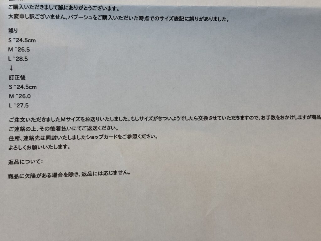 リリースされて結構速攻買ったので、サイズが当初の表記からちょっと違うよーというお手紙を同梱いただいてました。